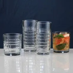 Great for cocktails, spirits, icy water or other refreshments, the Jasper range brings the best of European craftsmanship with a symmetrical embossed design inspired by mid-century modernism. Perfect for serving and entertaining, each glass comes with grid-like geometric patterns and weighted bases to give you a comfortable hold.