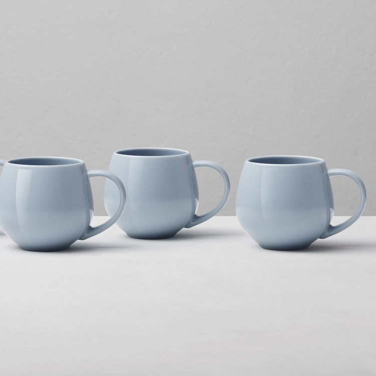 This contemporary set of four mugs is the perfect addition to your home. Made out of fine porcelain, each mug has a glossy exterior and a glazed interior for a smooth finish.
