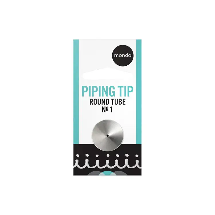 With this Mondo #1 Round Piping Tip, all of your delectable delights will appear exquisite and professionally made! This round tip will enable you to top your edible creations with intricate designs. The sturdy stainless steel tube is made to endure frequent use without warping.