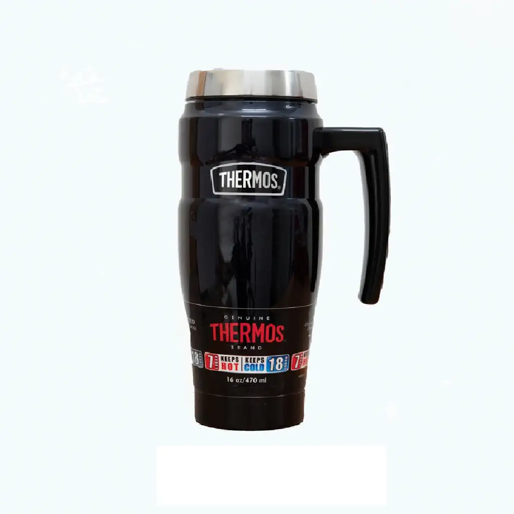 The ultimate mug for coffee on the go, the Thermos Stainless King Vacuum Insulated Travel Mug 470ml in Midnight Blue will help you with you king sized coffee addiction. Made from durable double walled stainless steel, and vacuum insulated, these travel mugs will keep their contents hot for up to 7 hours and cold for up to 24 hours. These is a built in hook that easily holds tea bags and most loose leaf tea infusers. This mug tapers at the base so that it will fit most vehicle cup holders.